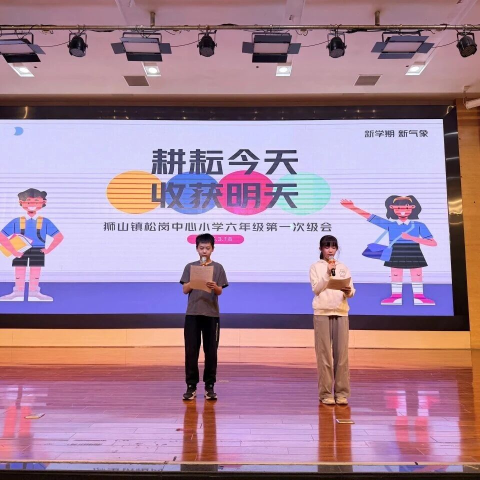 2026年3月18日我校六年级全体师生齐聚校园,隆重召开以“耕耘今天,收获明天”为主题的新学期第一次级会。